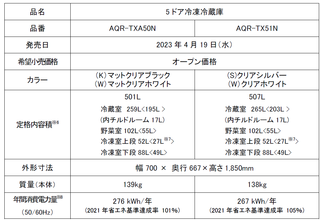 AQR-TXA50NとAQR-TX51Nの発売日は2023年4月19日