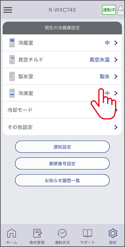 節電モードや急速製氷、冷蔵室の温度、庫内の設定できるだけでなくドアの開閉回数により家族の誰かが帰ってきたか、確認できるようにもなる(見守り機能)